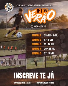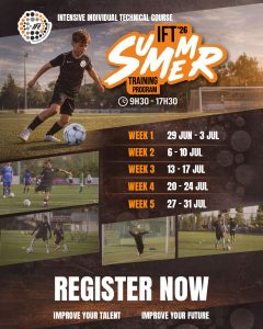 No Verão de 2026, os nossos cursos regressam com a qualidade, exigência e excelência que caracterizam a metodologia IFT, proporcionando a atletas de diferentes idades e níveis uma oportunidade única para evoluir tecnicamente, trocar experiências e elevar o seu rendimento desportivo.